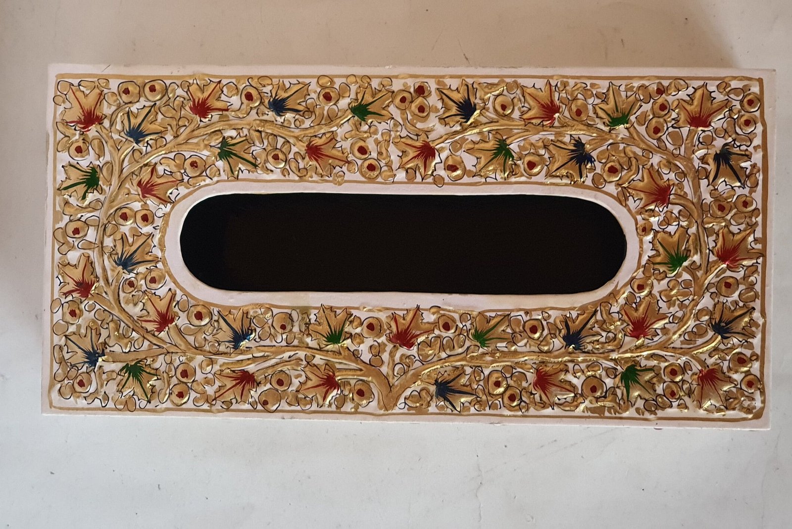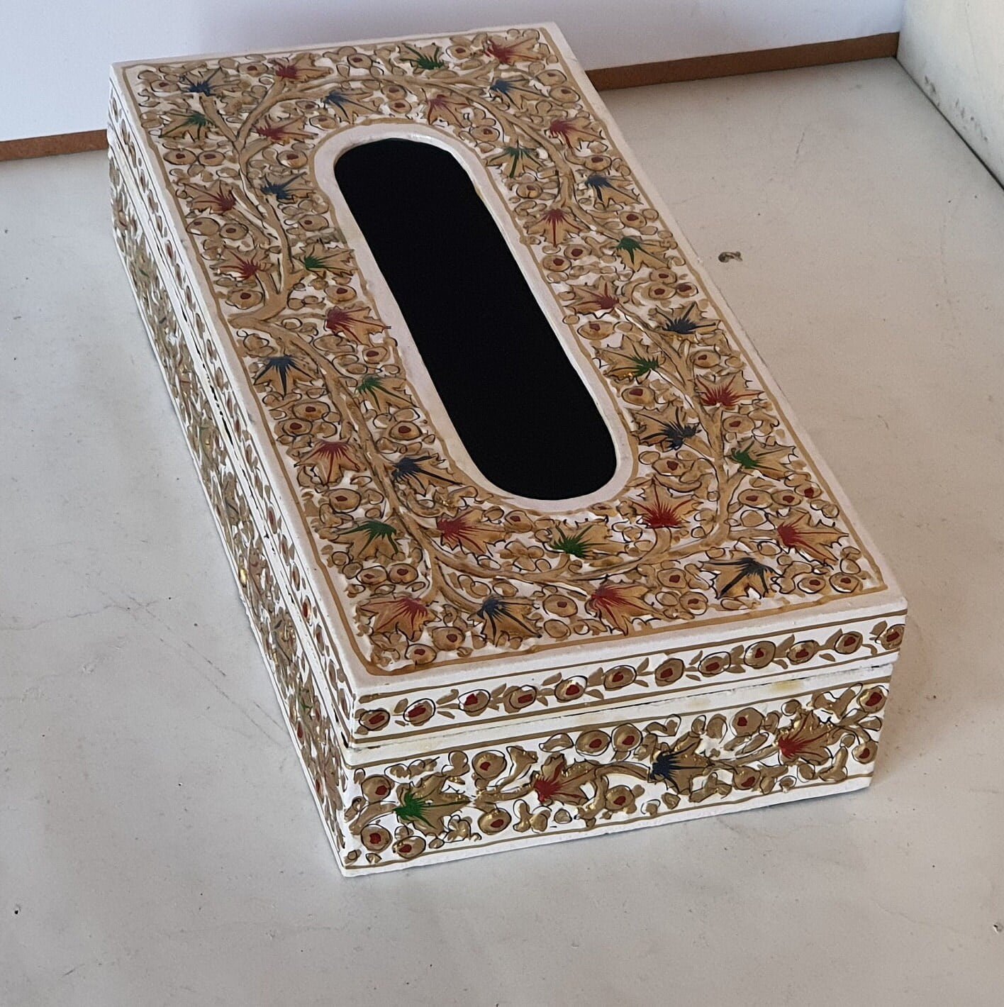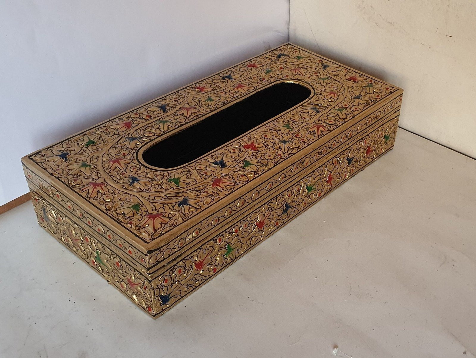 As part of our Kashmir Expo Arts collection, this paper mache box represents genuine Indian crafts. Every piece is skillfully hand-painted and embossed with delicate foliage, ensuring that each box is unique. The handmade nature means slight color and design variations may occur, which actually enhances its individuality and authenticity. These wooden box alternatives offer superior artistry and sustainability compared to mass-produced options.