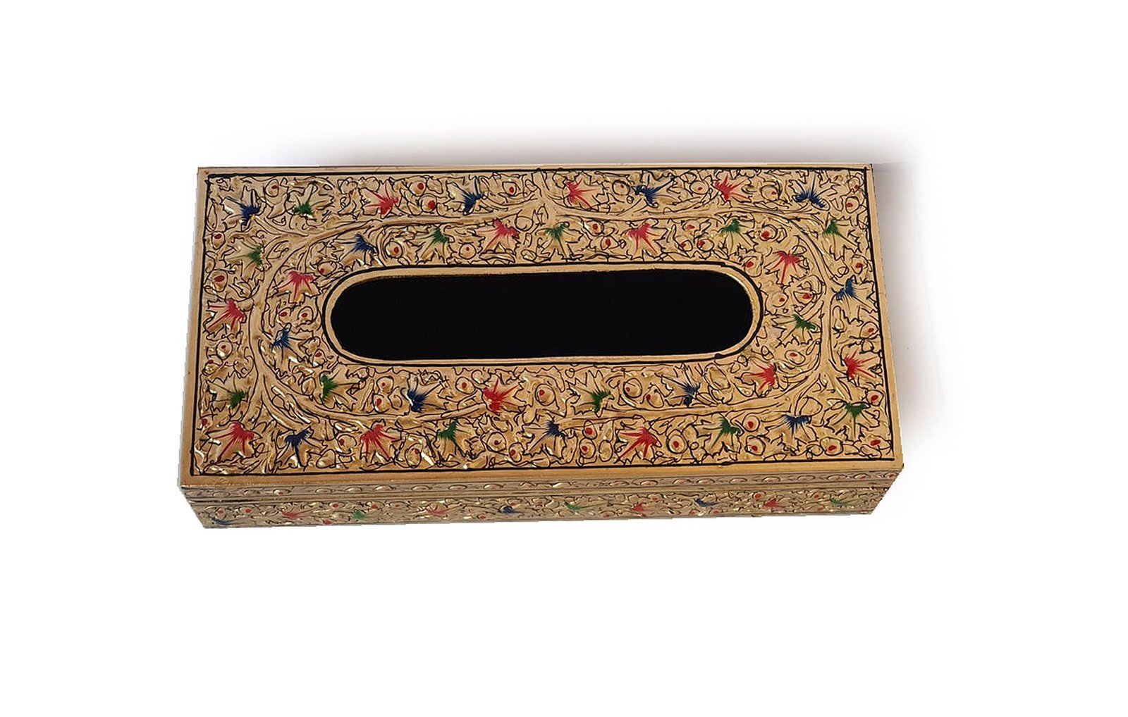 Each hand-painted napkin box includes exquisite attention to detail. The 10-inch x 5-inch dimensions fit perfectly in most spaces. Explore more from our Kashmir Expo Arts and Crafts collection to discover additional home decor solutions. Our paper mache boxes are popular choices for creating elegant table settings, organizing car interiors, and adding artistic flair to office spaces. The tissue box holder category on our site offers 12+ complementary items for your consideration.